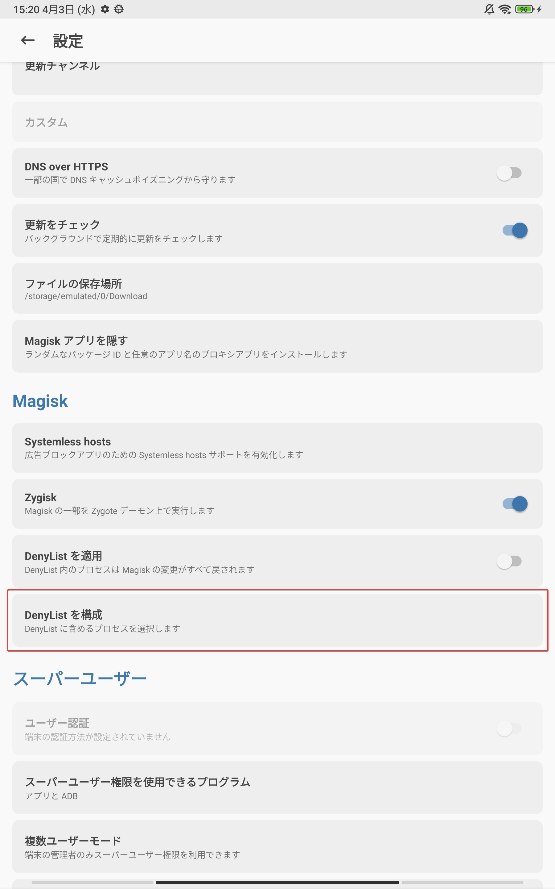 あとはアップデートをダウンロードして再起動する前にMagiskのパッチを当てます。
